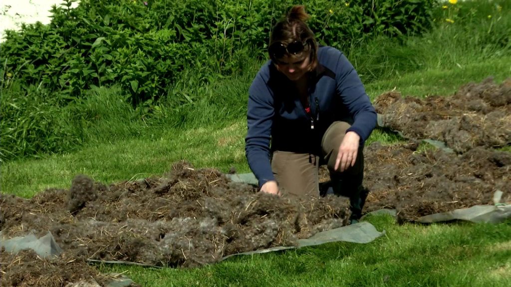 採取されたダウンはわらなどのゴミが非常に多く、これを最後は手によって選別します。