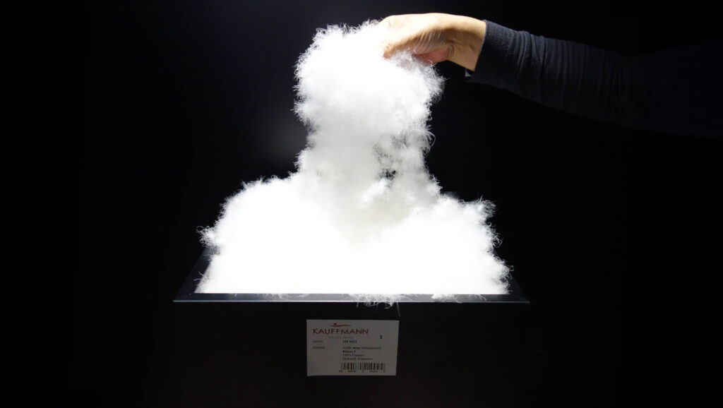 ゴミが少ないのもステッキーダウンの特徴です。絡みあうダウンボールだけを、良いものは手選別によって選り分けられるために、ダウンファイバーと呼ばれる羽毛ゴミが非常に少ないのです。