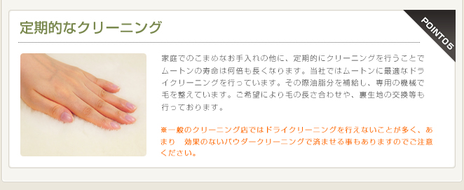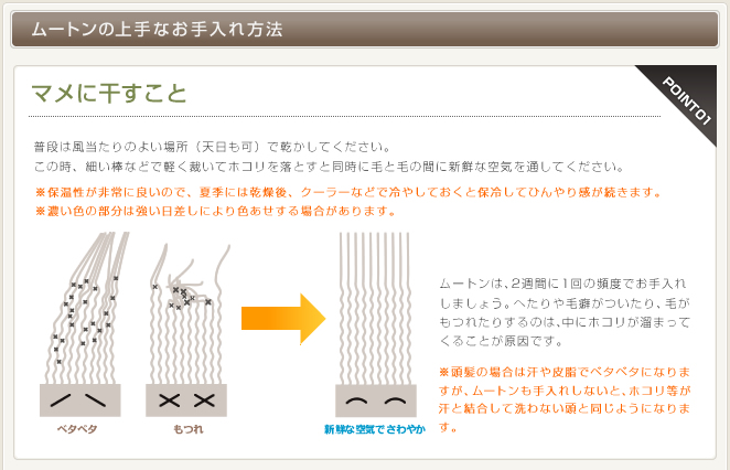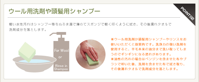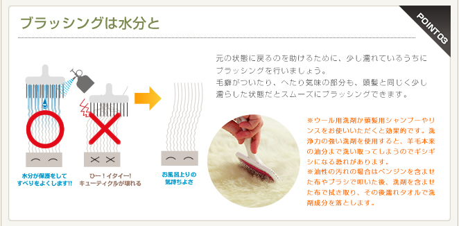 元々羊の毛は汚れが付きにくい性質があります。それでも、定期的なメンテナンスはかかせません。