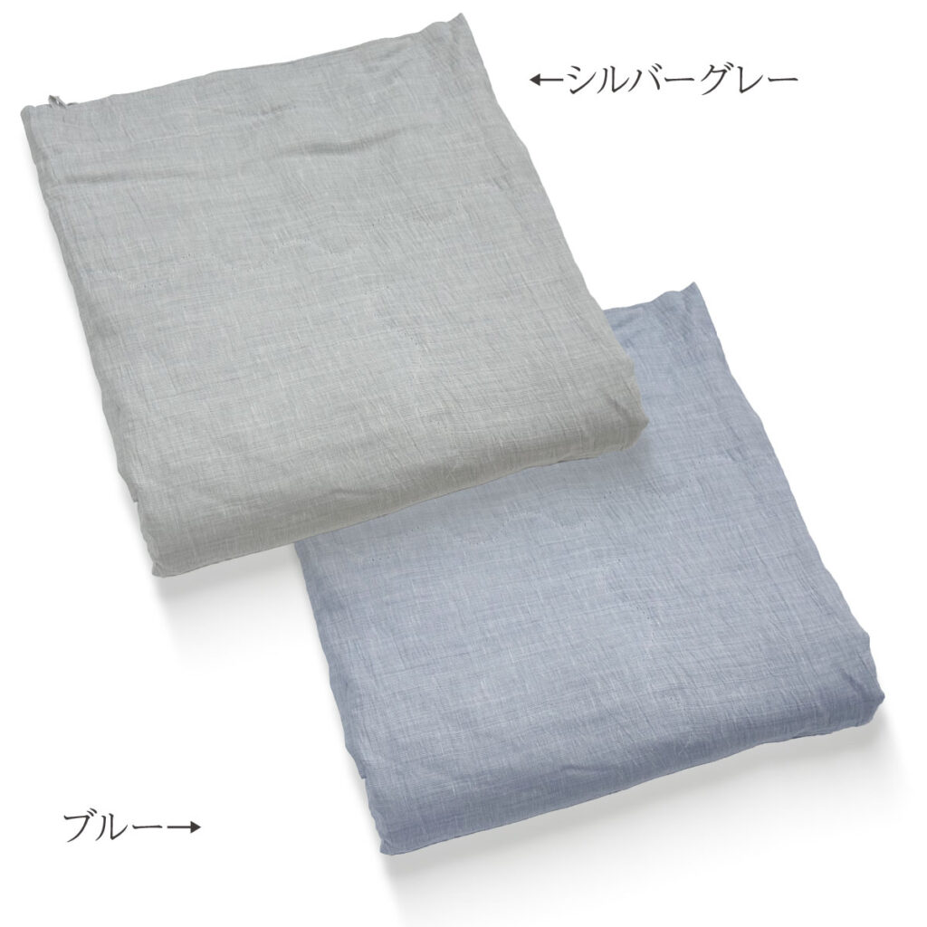 カバーは80/60という細番手の軽量生地を使ったラミー麻100%の近江ちぢみ加工の生地です。さらっと、冷っとした風合いでおやすみいただけます。