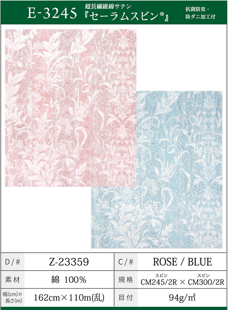 側生地共通 S80M 超長綿80サテン 114g/㎡ 通気度推定1.5cc 国産生地 無地 白色