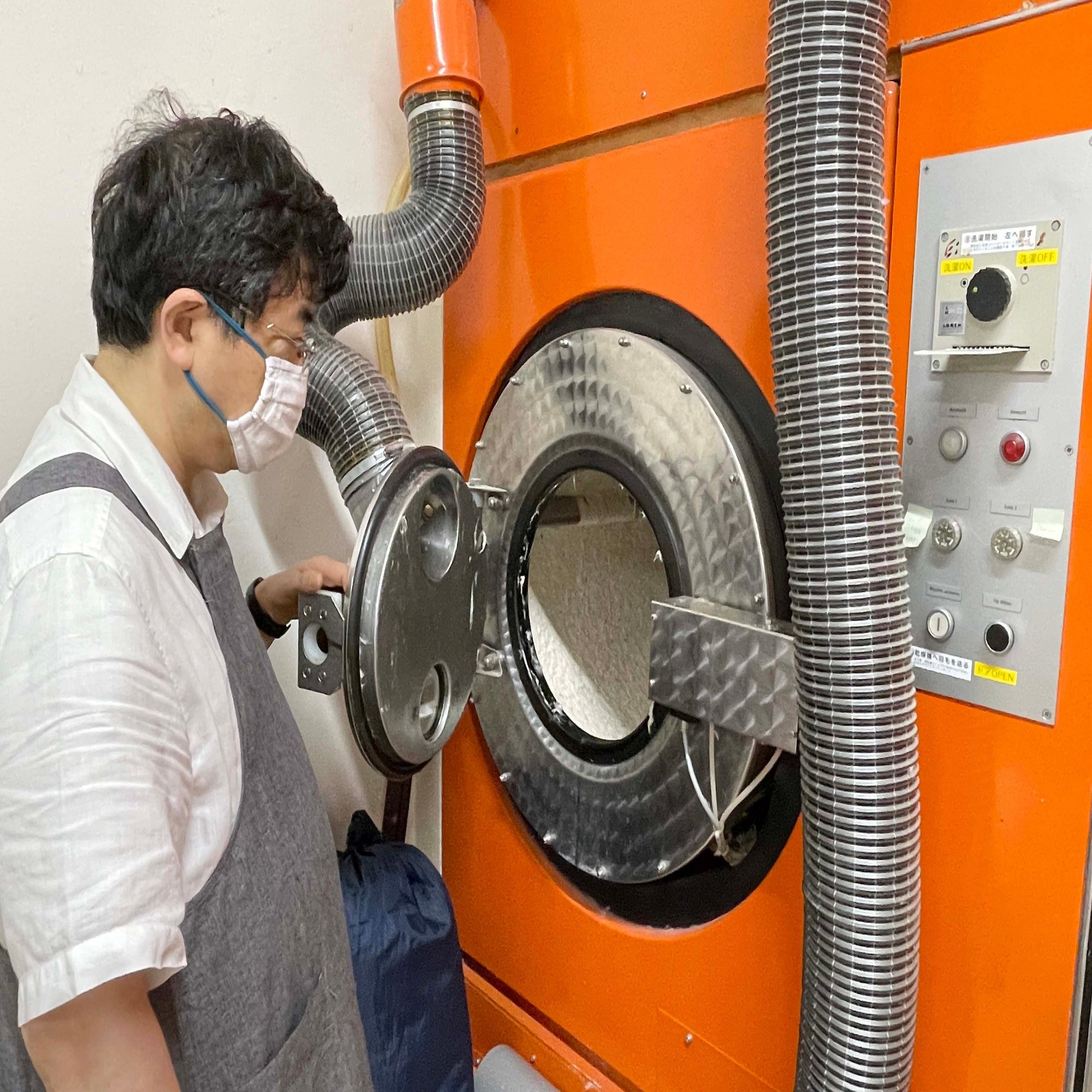 プレミアムダウンウォッシュは、羽毛布団を解体した後、専用の洗浄機で直に洗います。この方法が、最もきれいに羽毛を洗うことができます。